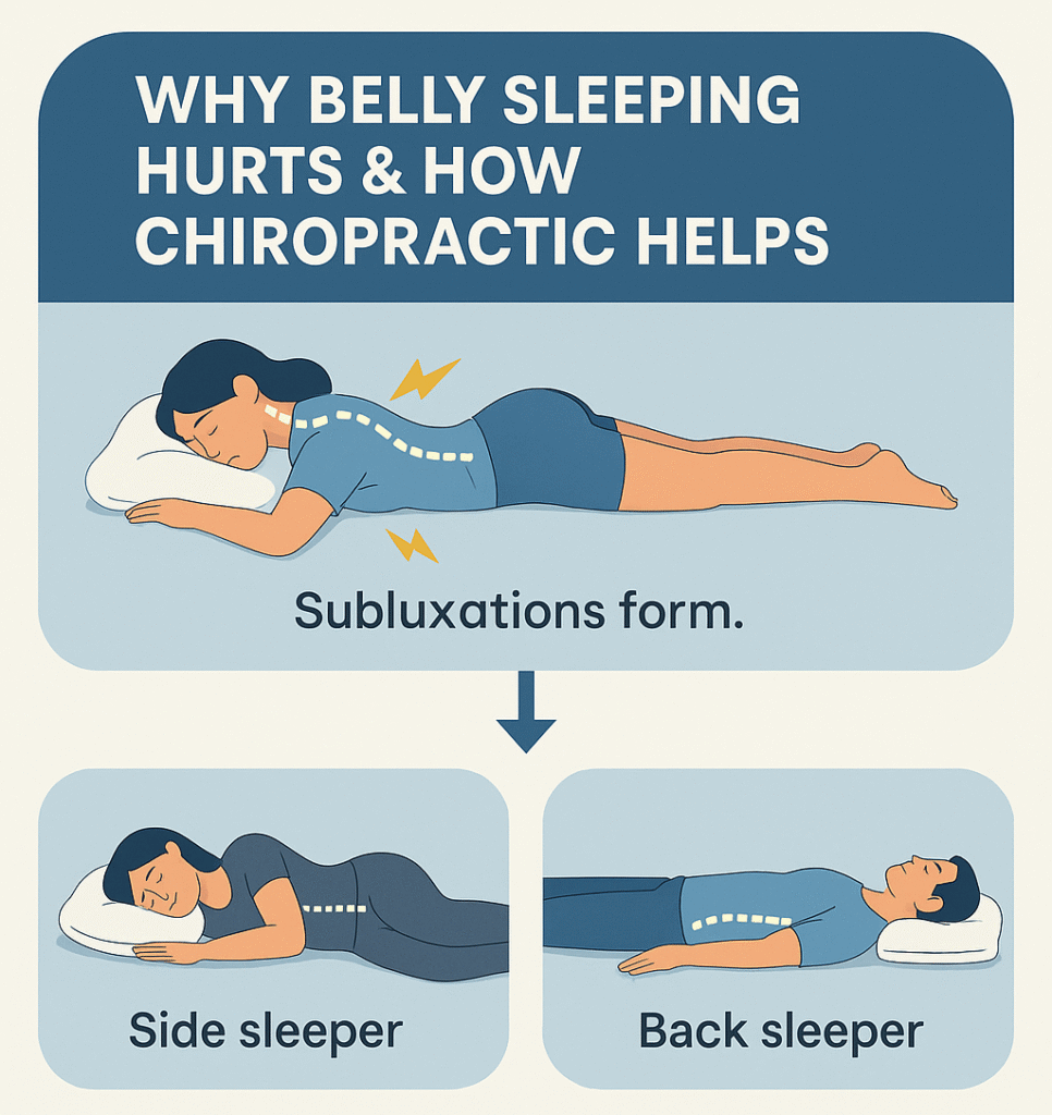 Why Sleeping on Your Belly Harms Your Spine At first, belly sleeping might feel comforting, but beneath the surface it’s quietly working against your spine. When you lie face-down, your head is forced to one side for hours at a time, twisting your neck and upper back. The lower back arches unnaturally, compressing the discs […]