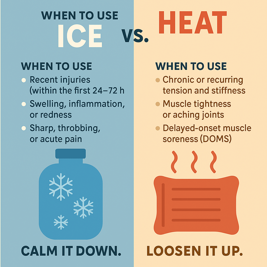 We’ve all been there — you wake up stiff, sore, or aching from a workout, a long drive, or simply from sleeping the wrong way. You reach for the freezer or the heat pack, but then that familiar question hits: “Do I use ice or heat?” It’s a simple question,