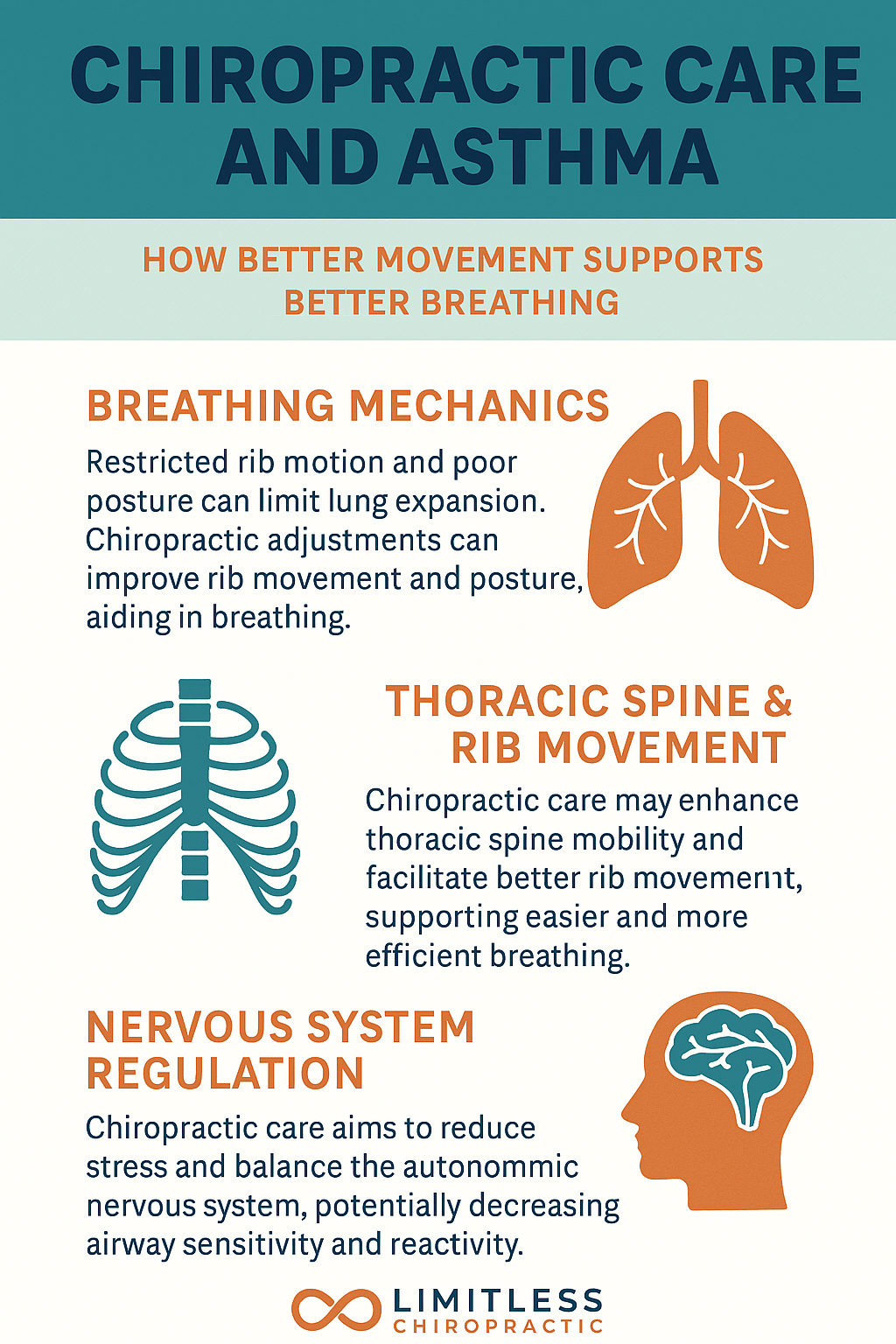 This is where chiropractic care steps in—not as a cure, but as a way to help the body move and regulate itself more effectively. By improving the function of the spine, enhancing rib mobility, and supporting the nervous system, chiropractic care may help people breathe with more ease and efficiency.