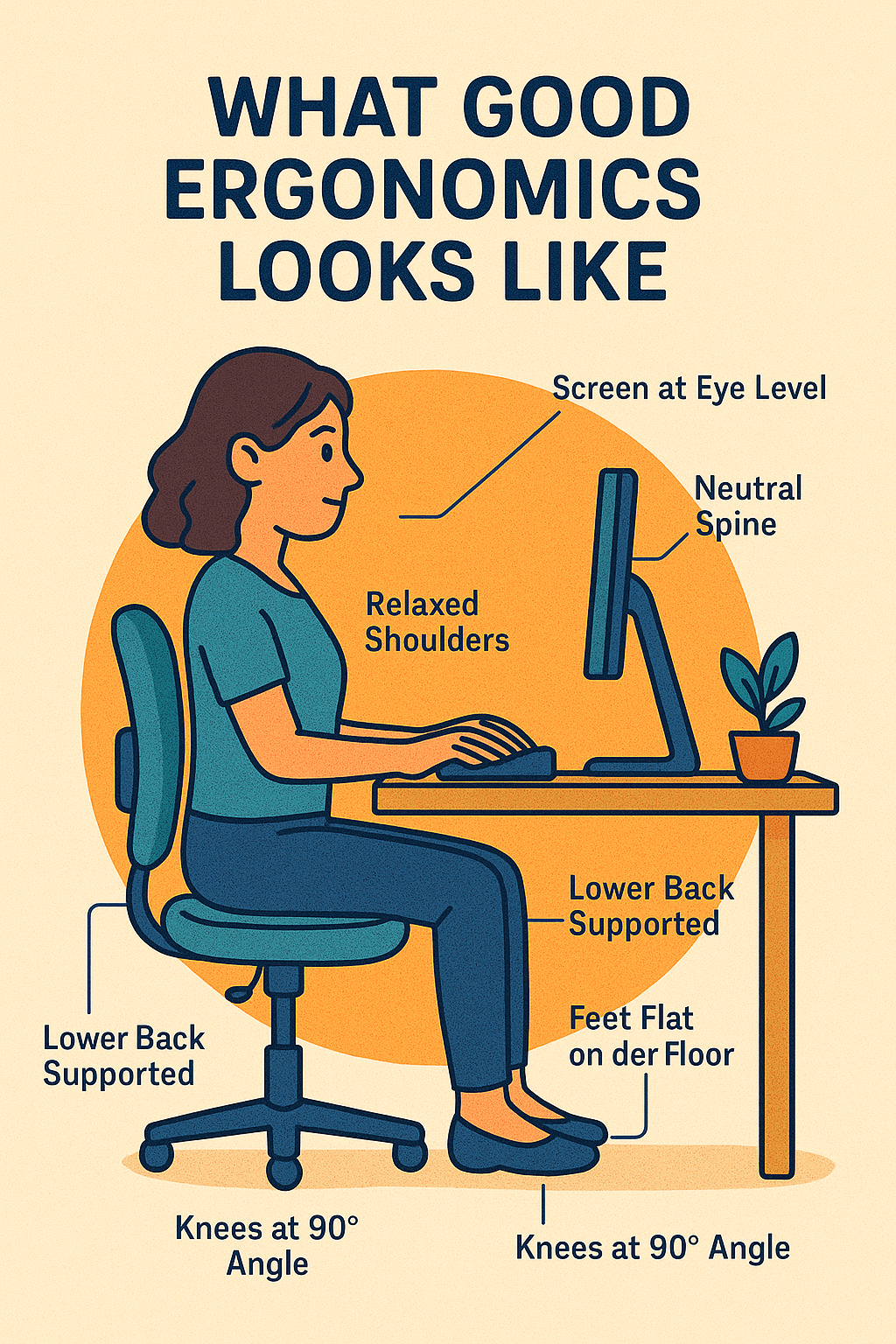 Most of us weren’t exactly trained to sit like champions at our desks. But here’s a local reality check: poor ergonomics doesn’t just cause sore necks and stiff backs — it can seriously disrupt your spinal health and nervous system function. 😬