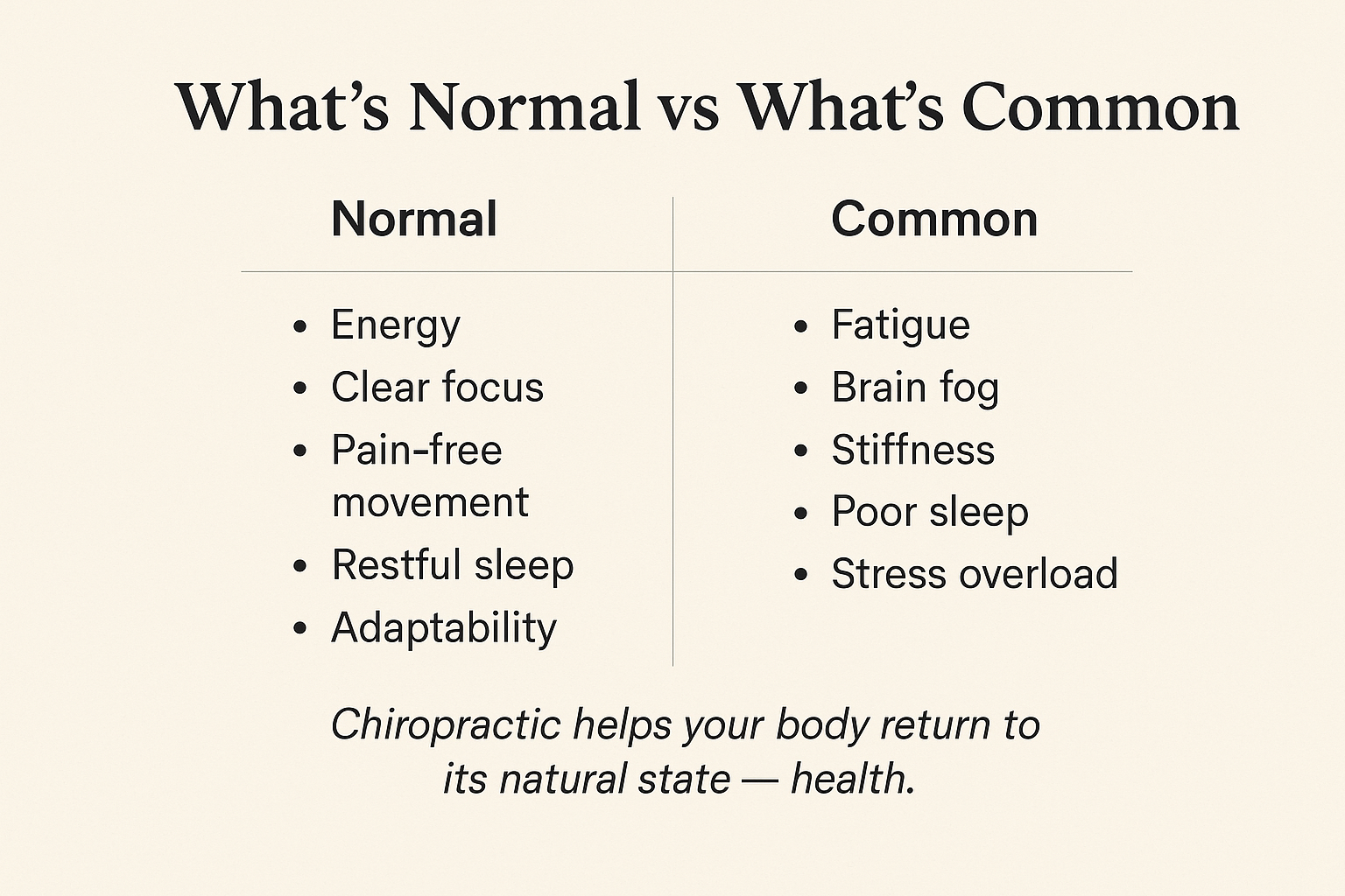 There was a time when feeling vibrant, clear-headed, and pain-free was the standard. Our bodies are designed to move, adapt, and heal. Yet, somewhere along the way, what’s common became confused with what’s normal.