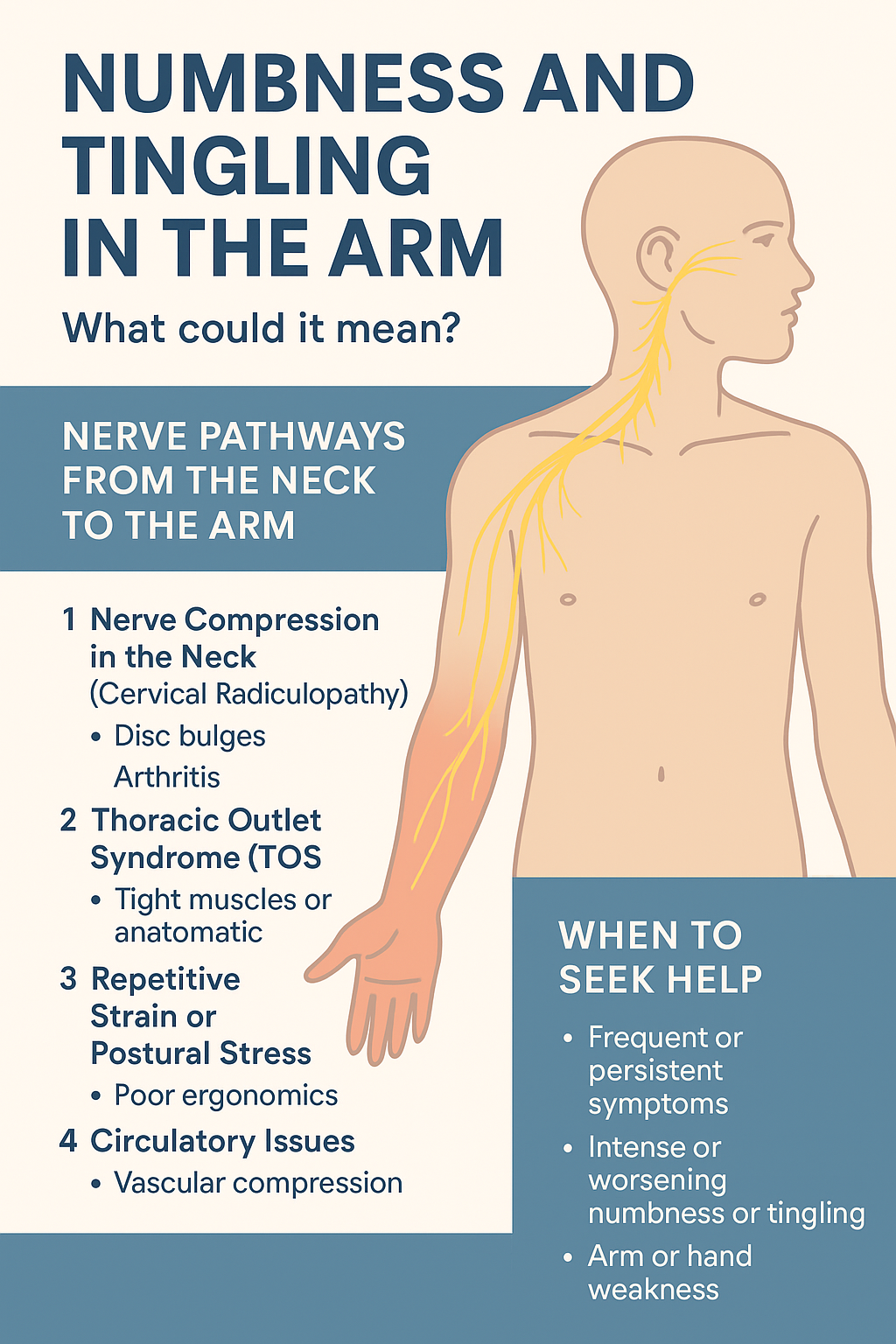 We’ve all had a limb “fall asleep” from leaning on it too long – that temporary tingling is usually harmless. But when numbness or tingling in your arm becomes frequent, persistent, or intense, it can point to a deeper issue involving your nervous system.