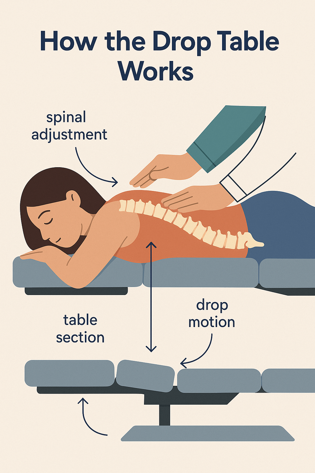 The key isn’t the drop itself — it’s the timing and direction. The chiropractor applies a quick, precise impulse that matches the natural alignment of your spine or pelvis. When the segment of the table releases at that exact moment, it reduces the need for excessive force and helps overcome muscle tension that might otherwise resist movement.