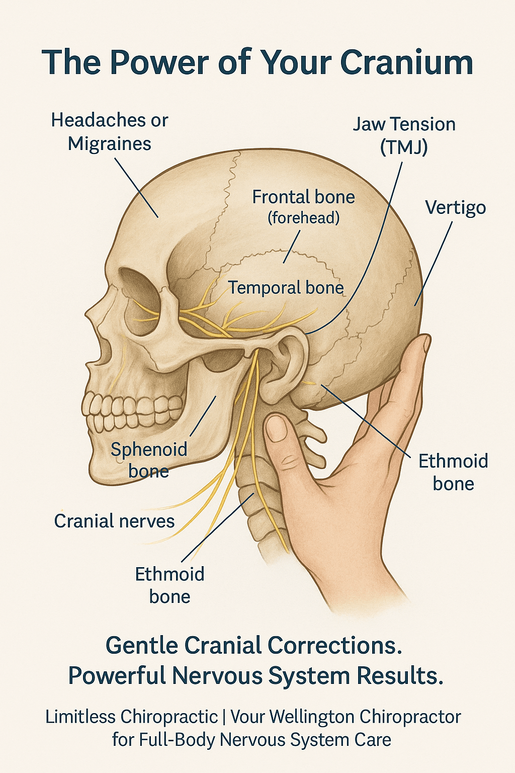 At Limitless Chiropractic in Wellington, we use a tailored approach combining cranial and spinal care. Whether you’re recovering from a head injury, noticing stress-related symptoms, or seeking support for your child’s development, cranial corrections are part of our toolbox to help your nervous system thrive.